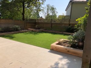 This week we have finished laying the “marshallsreg porcelain” paving area and laying the artificial grass supplied by easigrass.