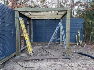 Following the drainage works, we have put up a stunning fence across the back of the garden. We have also dug out a very deep whole for the new pond and lastly, we have put up a new pergola. We are going to be painting it black tomorrow!