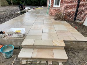 This week we have finished the new decking area and laid the bullnosed steps. The paving looks beautiful!