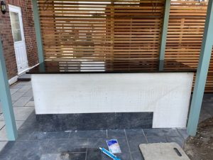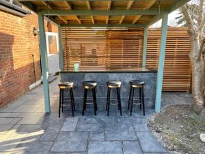 We laid a new paving area, built a kitchen cover, created a screen and built a outdoor bar with built in fridge and storage.