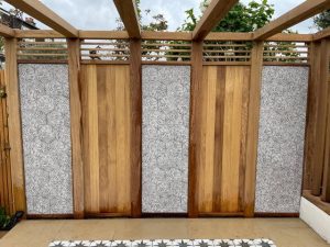 Once built we tilled the pergola with tiles from #mandarinstone. We used the Classic Casablanca Mono Decor Hexagon tiles.