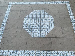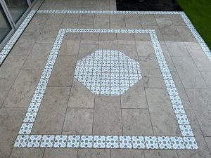 We recently completed this beautiful back garden in Ealing. The tiles were supplied from @Mandarin Stone. We used the classic Moleanos blue honed pavers for the main paving area and then created an octagon in the middle using the tangier ivy mix tiles. We also laid artificial grass supplied by @easigrass, put up a new fence, created a screened area & did soil prep for planting.