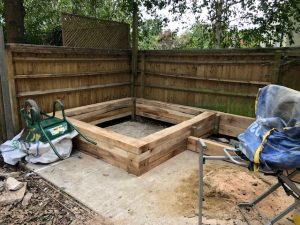 We are creating raised beds, laying a new porcelain patio, a side path, fitting artificial grass, fence works and then finish off with planting.
