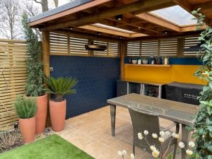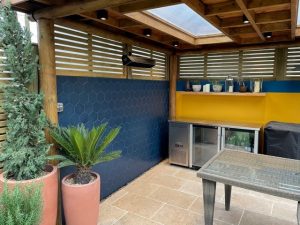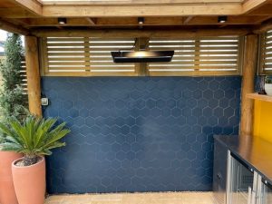 We have just finished tiling this beautiful wall in our Clients outdoor seating area. The tiles were called Oska navy matt Porcelain hexagon #mandarinstone. It’s such a feature wall and looks fantastic & the client is delighted with the end result!