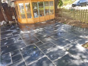 We laid 20sqm of Bradstone limestone paving in “Blue black”.