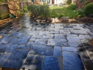 We laid 20sqm of Bradstone limestone paving in “Blue black”.