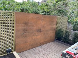 We used Alpha/Abbey dark multi clay pavers & Corten steel Design Clad both supplied by #londonstone #thisislondonstone.