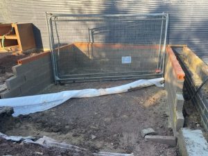 The pool walls have been built, we are waiting for a drier time to have the GRP works carried out. The pergola/seating area are now built and flooring laid. The pond walls have been built, the firepit area walls have been built and we are building a plant bed adjacent to this. The block work is in full swing for the buildings (bar and office) and lastly the outdoor kitchen now has a fireplace & pizza oven.
